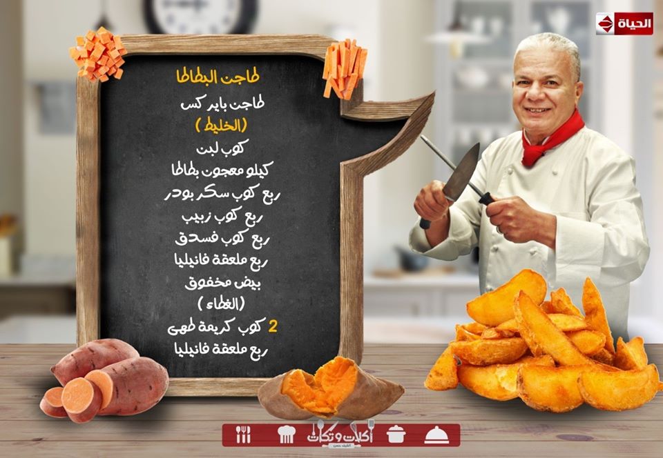 طريقه عمل طاجن بطاطا بطريقه الشيف حسن من برنامج اكلات وتكات على قناه الحياة الشيف حسن